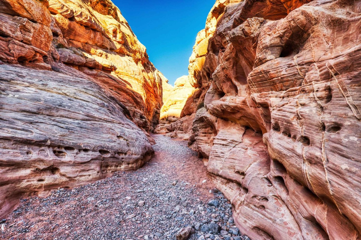 Transport t/r fra Las Vegas Professionel turguide Indgangsbilletter til Valley of Fire State Park Besøg ved Rainbow Vista, Atlatl Rock, The Cabins og White Dome Vand på flaske SnacksImportant Information