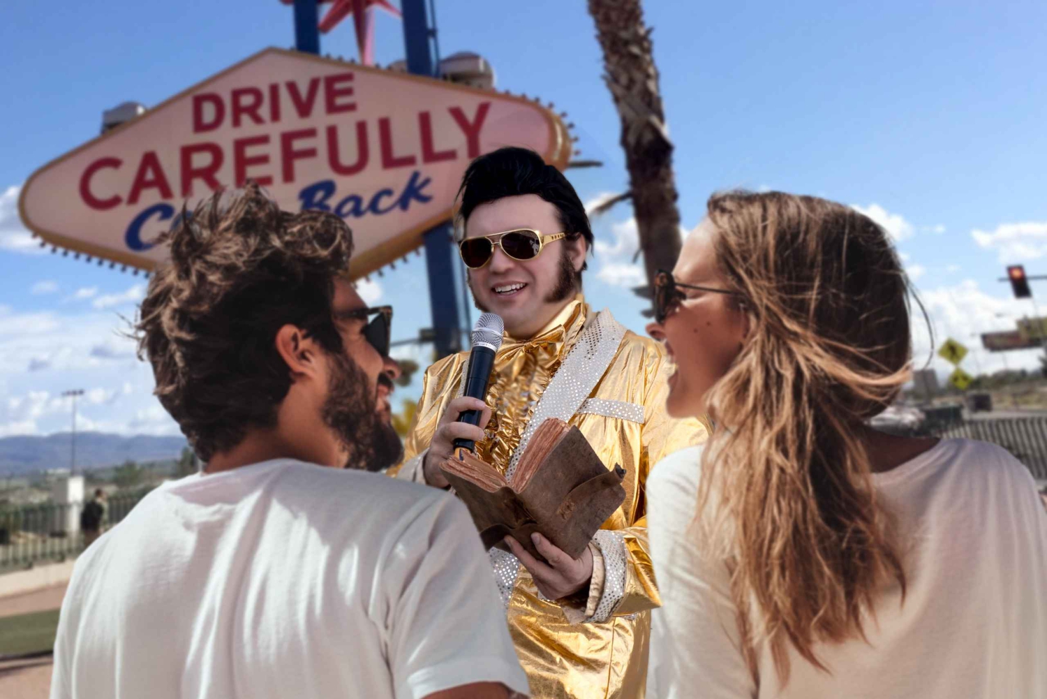 91 ReviewsFeiere eine Las Vegas Hochzeit oder eine Erneuerung des Eheversprechens mit Gold Elvis am Welcome to Fabulous Las Vegas Sign. Genieße eine Zeremonie mit Elvis-Gelübden, Gesang, einem ersten Tanz und Fotos.