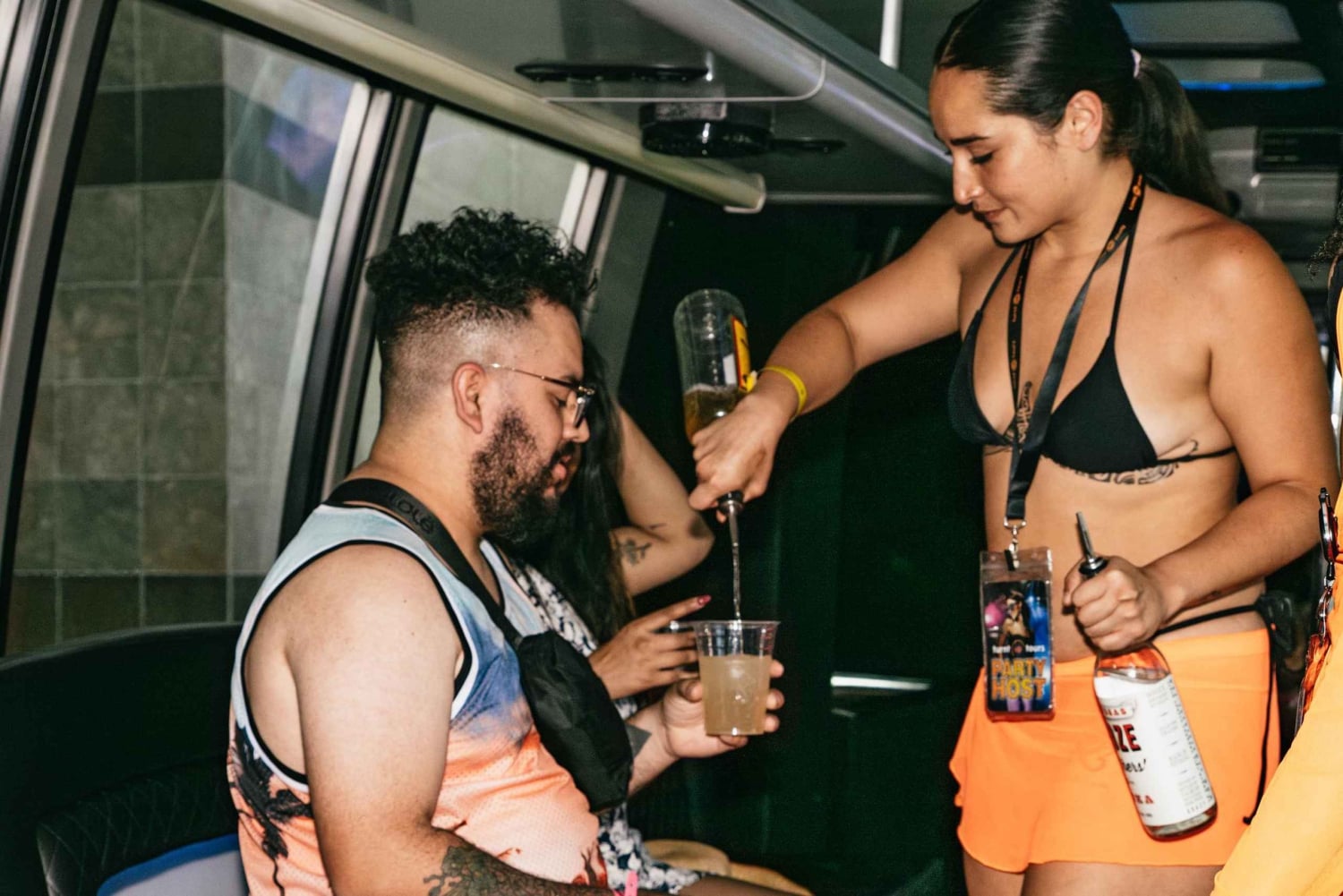 - Genieße kostenlose Getränke an Bord des Partybusses