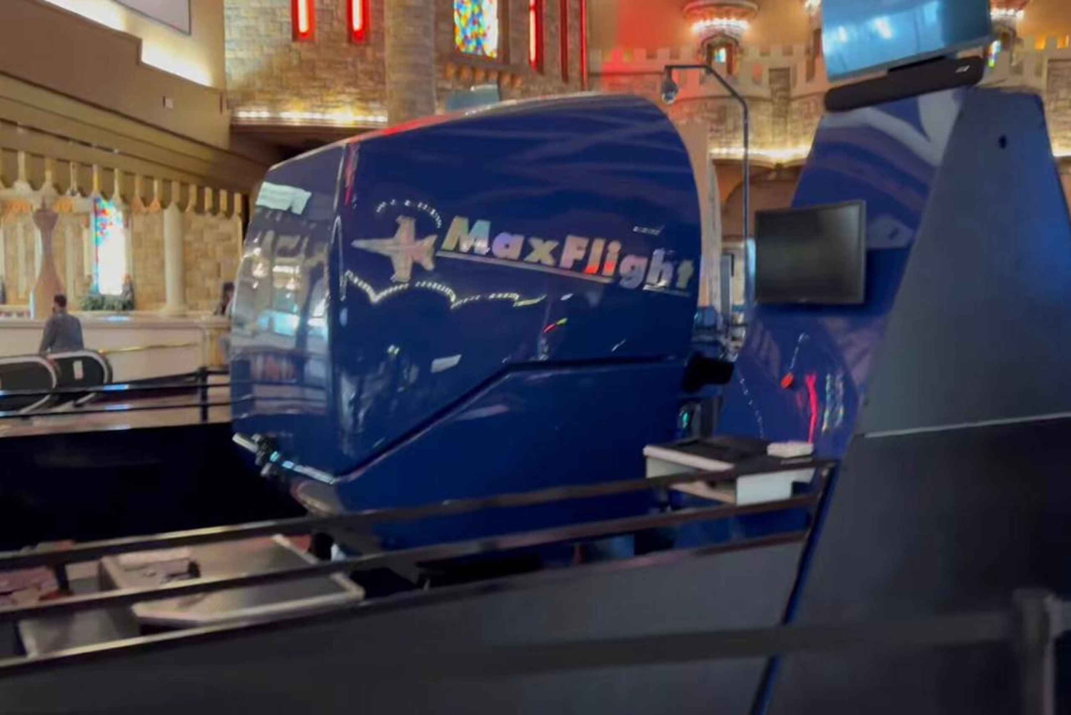 Experimenta la máxima emoción con el Simulador de Vuelo Max en Excalibur, Las Vegas. Esta vanguardista montaña rusa biplaza y simulador de vuelo ofrece una experiencia única y envolvente, con el único simulador del mundo capaz de un movimiento completo de 360° en ambos ejes. Tanto si eres un buscador de emociones como un aventurero ocasional, esta atracción promete un realismo y una emoción sin igual. Comienza tu aventura en la entrada principal de Excalibur, donde te recibirá el impresionante simulador. Ponte el cinturón y prepárate para un viaje que simula la sensación de volar y las emociones de una montaña rusa. La avanzada tecnología del simulador garantiza un viaje suave pero estimulante, haciéndote sentir como si surcaras los cielos. La experiencia concluye contigo de vuelta sano y salvo en la Entrada Principal del Excalibur, listo para explorar más de lo que Las Vegas tiene que ofrecer o para revivir la emoción con otra atracción.Includes