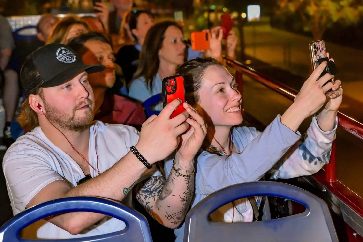 24 or 48-hour unlimited hop-on hop-off access 7PM Night Tour by open-top bus (if option selected) Free 30 minutes of play at Atomic Golf driving range Open-top double-decker bus Digital commentary Souvenir earbuds