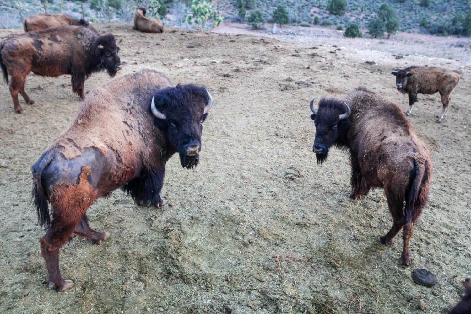 Be picked up from Las Vegas, Laughlin, or Kingman, Lake Havasu Cities, and travel to a historic Western ranch only 20 minutes from the Grand Canyon. Here you’ll start your horseback ride through the Joshua Tree Forest where the corraled Buffalo roam. Get acquainted with your horse and start your ride along the forest trail. Follow your experienced guide through Joshua Tree and see buffalo roaming around in their natural environment. As your ride continues, you’ll travel up the trail to a higher elevation, where you’ll be able to see blossoms that are 600 years old. Along the way, enjoy panoramic views of the Joshua Tree Forest. Stop for lunch at an authentic Western ranch once owned by a bank/train robber where a cowboy will sing old Western tunes. Join in for a song or dance, as you experience what the Old West was like.Includes