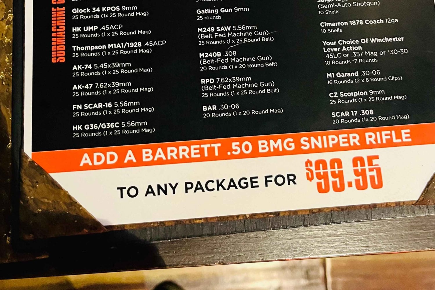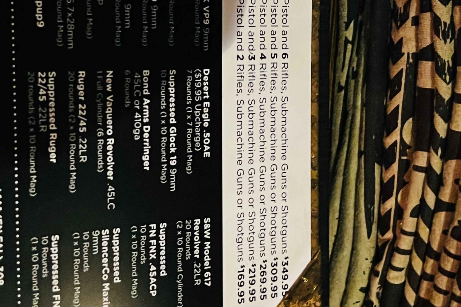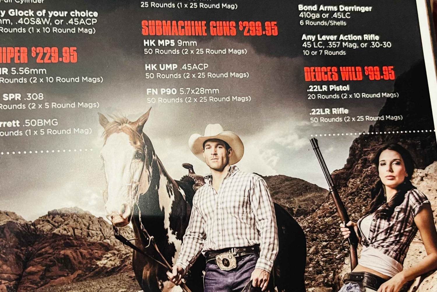 Embark on an unforgettable adventure at our premier Las Vegas shooting range, where every detail is designed to elevate your experience. Your journey begins with exclusive round-trip transportation on a private tour vehicle, ensuring a seamless and comfortable ride to and from our facility. Upon arrival, our experienced staff will provide a comprehensive safety briefing to ensure your comfort and confidence throughout the experience. Choose from our extensive collection of firearms, ranging from classic handguns to powerful rifles, and prepare to unleash your inner marksman under the expert guidance of our instructors. Whether you're a seasoned shooter or a first-time visitor, our range offers customizable experiences tailored to your skill level and preferences. Hone your shooting skills as you take on a variety of targets, feeling the thrill of each shot fired and the satisfaction of hitting your mark. Capture the excitement with optional professional photography and video services, preserving the memories of your Las Vegas adventure for years to come. After your exhilarating session on the range, browse our selection of high-quality souvenirs and memorabilia, including branded apparel, collectible firearms, and unique gifts to commemorate your visit. Join us for an unparalleled experience that combines adrenaline-pumping action with top-notch hospitality, making your time at our Las Vegas shooting range truly unforgettable. Whether you're seeking an adrenaline rush, honing your skills, or simply looking for a unique activity in the entertainment capital of the world, we guarantee an experience that exceeds your expectations from start to finish.Includes