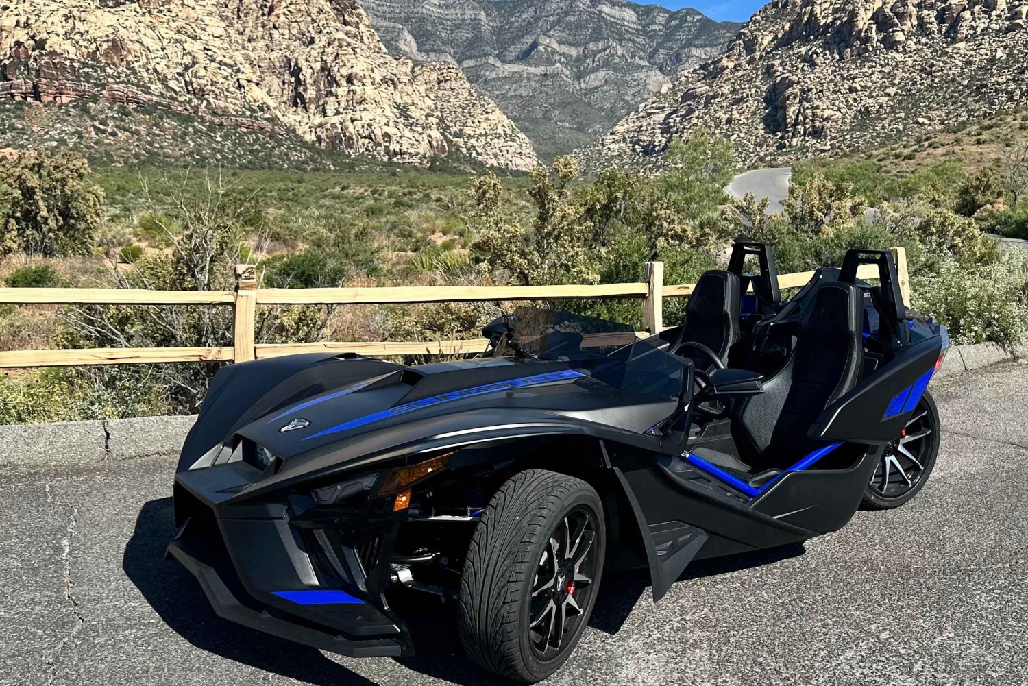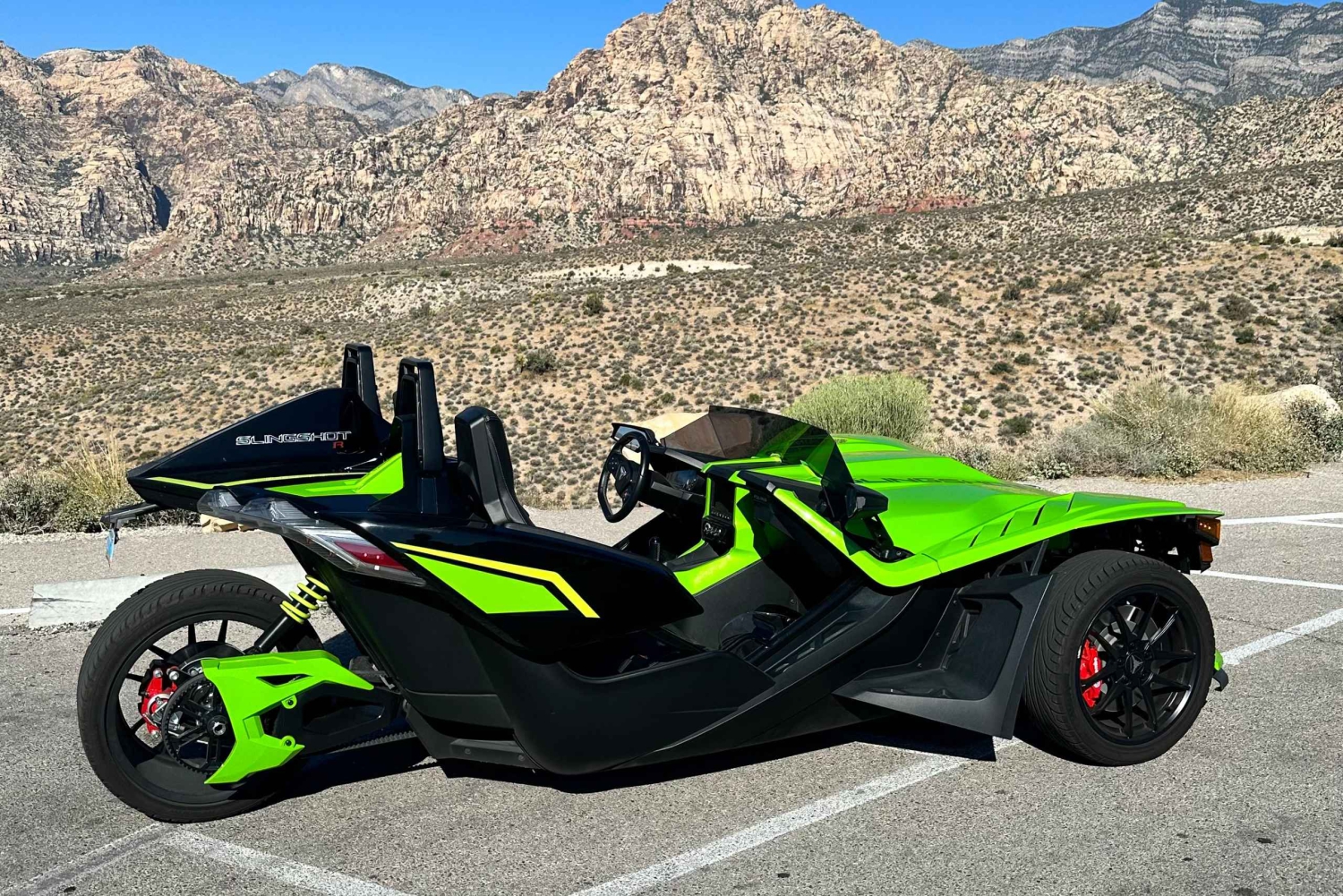 Escape the heat at Red Rock Canyon! Red Rock Canyon is normally 15 degrees cooler than Las Vegas. Introducing Sin City Slingshots Tour’s exhilarating 2.5-Hour Red Rock Adventure. This journey puts you in the driver’s seat of a unique, fun vehicle designed for exploration. Buckle up for an unforgettable experience as you embark on a scenic drive to the Red Rock Canyon. Your adventure begins with a picturesque drive to Red Rock, where the natural landscape's striking beauty unfolds before you. The 13-mile Red Rock Loop, a captivating journey through towering red sandstone formations, hidden canyons, and panoramic vistas, will leave you in awe of the stunning geology of the region. With the wind in your hair, you’ll create memories that last a lifetime. Then you’ll navigate the twists and turns of the Red Rock Loop with ease in your nimble Slingshots. As your knowledgeable tour guide, provides insightful commentary about the geological wonders and cultural history of Red Rock Canyon, you'll feel the thrill of being in control, ready for the next turn, the next adventure. Enjoy the scenic drive back to your starting point as you conclude your Red Rock adventure. Reflect on the memories created amid the stunning landscapes of Red Rock Canyon.Includes
