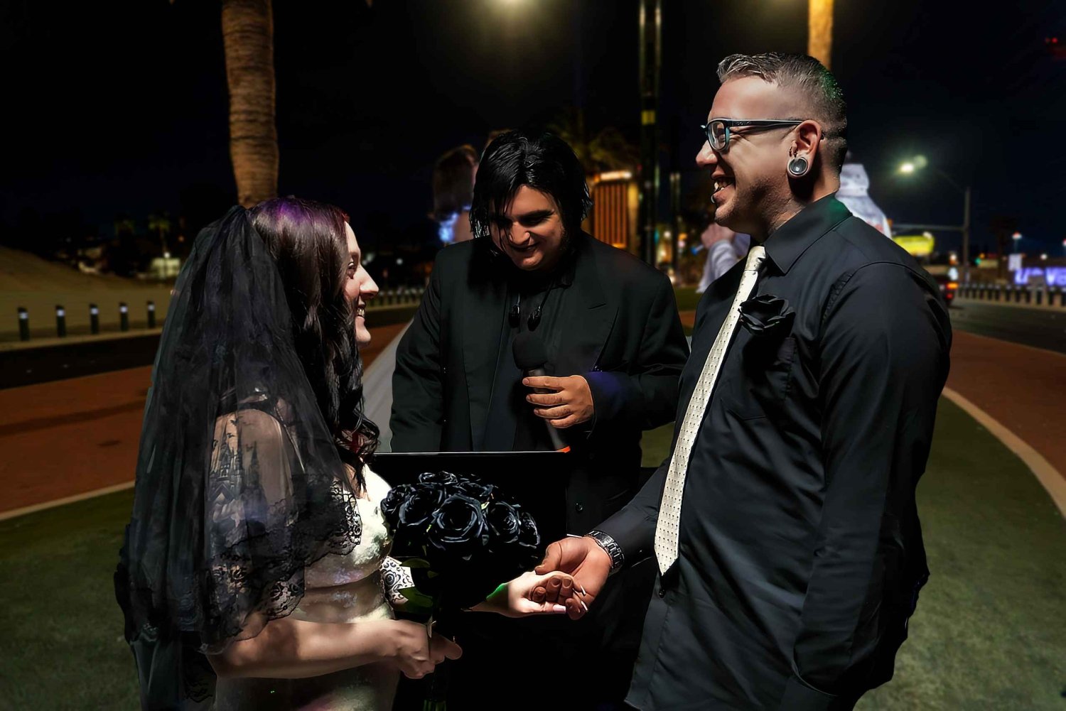 Célébrez votre amour avec un mariage ou un renouvellement de vœux véritablement unique au célèbre panneau « Welcome to Fabulous Las Vegas » avec Kevin, le Roi du Mariage de Las Vegas. Choisissez une cérémonie traditionnelle, menée par votre officiant en costume traditionnel, pour une expérience de mariage intemporelle à Las Vegas, ou ajoutez une touche de fantaisie avec une variété d'options thématiques. • Romantisme traditionnel – Une cérémonie en plein air simple, mais élégante, au panneau « Welcome to Fabulous Las Vegas », avec des vœux romantiques intemporels. • Romance gothique – Une expérience sombre et poétique avec des vœux mélancoliques, une touche gothique et un rituel de mariage des mains. • Mobster Vegas – Plongez dans l'univers de la Sin City d'antan avec un officiant espiègle de style mafieux et une touche d'attitude vintage de Las Vegas. • Wizard Academy – Plongez dans un monde de magie, avec des sorts fantaisistes et un charme de sorcier, pour une cérémonie enjouée. • Dark Space Lord – Une célébration inspirée de la science-fiction, évoquant le drame des batailles intergalactiques et des romances interdites. • Vegas Hangover – Une interprétation sauvage et comique du mariage à Las Vegas, inspirée par des aventures de films comiques inoubliables. • Lebowski Dude – Détendez-vous dans un style véritablement décontracté avec une cérémonie inspirée de la sagesse décalée du Dude. Au cours de votre cérémonie, votre officiant vous guidera à travers des vœux et des rituels sincères devant l'emblématique panneau de Las Vegas. Vous êtes invités à enregistrer le moment en utilisant le support de téléphone fourni, et vos invités peuvent prendre des photos en nombre illimité. Après avoir prononcé vos vœux, vous pourrez, si vous le souhaitez, danser votre première danse, signer votre certificat de cérémonie et recevoir un paquet de souvenirs pour vous remémorer cette journée. Que vous optiez pour une tradition intemporelle ou une expérience à thème inoubliable, votre cérémonie au panneau de Las Vegas sera un souvenir que vous chérirez à jamais.Includes