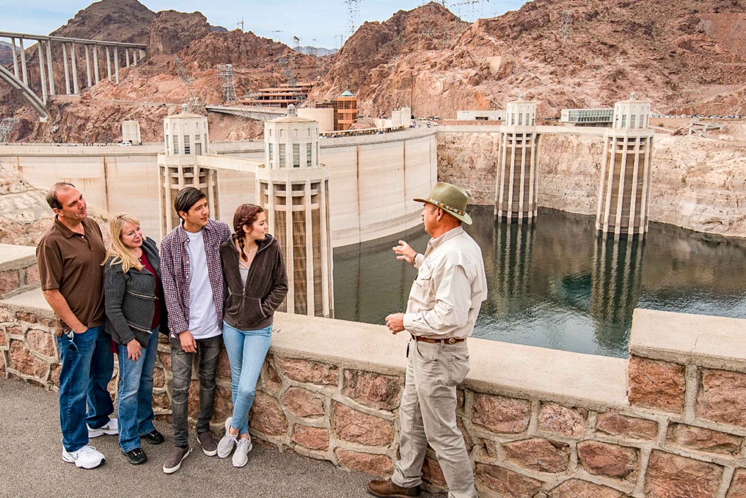 Viaggia con stile e comfort verso la più famosa attrazione turistica del Nevada. La diga di Hoover è un'opera di ingegneria moderna ed è una delle sette meraviglie del mondo moderno create dall'uomo. La tua guida professionale ti accompagnerà personalmente per tutta la durata del tour per aiutarti a sfruttare al meglio l'esperienza della diga di Hoover. Tra le varie aree di interesse lungo il percorso ci sono la storica città di Boulder, originariamente una città federale costruita per ospitare gli operai che costruivano la diga di Hoover, il bellissimo lago Mead - il più grande specchio d'acqua artificiale dell'emisfero occidentale - e le spettacolari vedute del fiume Colorado. Alla diga, assisterai a una presentazione dal vivo della costruzione e della storia della diga e potrai visitare le gallerie espositive e il pittoresco ponte di osservazione. Infine, scendi alla centrale elettrica per vedere gli enormi generatori. Il tour alla scoperta della diga di Hoover offre tutto il tempo necessario per esplorare a fondo questo monumento storico nazionale e meraviglia ingegneristica del mondo. Goditi questa escursione di mezza giornata a bordo di un autobus di lusso personalizzato, che ti permetterà di avere un'esperienza più personalizzata. Nel caso in cui l'accesso alla sala dei generatori della diga di Hoover sia limitato dal Bureau of Reclamation, il tour includerà delle soste al Mike O'Callaghan-Pat Tillman Memorial Bridge e al Boulder City Hoover Dam Museum.Includes