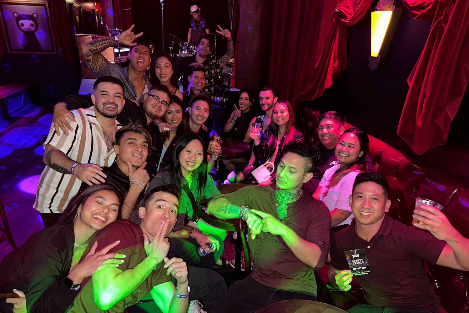 プロのパーティーガイドと他のゲストと共に、フリーモント・ストリートを駆け巡る伝説のバーホッピングで、ダウンタウン・ラスベガスの忘れられない夜をお楽しみください!最初の目的地は、ユニークで活気あふれるバー「パーク・オン・フリーモント」。エクレクティックなアート、カラフルな壁画、そして隠れたシーソーが特徴のこのバーで、ウェルドリンクの半額でカクテルを楽しみながら、賑やかな雰囲気とグループとの交流を満喫してください。 次に、フリーモント・イースト・エンターテイメント地区へ移動し、スタイリッシュなヴィンテージスタイルのラウンジ「コモンウェルス」へ。屋上バーでDJのセットを楽しみ、ドリンクチケット半額特典と、フリーモント・ストリートの中心部を見下ろす絶景を堪能してください。 パーティーはネオノポリス内にある「キャッツ・ミャオ」で続きます。この高エネルギーなカラオケバーは、1杯購入で1杯無料のドリンクキャンペーンで知られています。心ゆくまで歌い、新しい友達とダンスを楽しみ、お気に入りのヒット曲に身を委ねてください。 アイコニックなフレモント・ストリート・エクスペリエンスを散策しながら、ライブバンド、きらめくライト、ストリートパフォーマーに感動し、夜はトロイ・バーで締めくくります。この活気あふれる屋上会場は、ネオンの光の下でダンスを楽しみ、本物のラスベガスの雰囲気を存分に味わえる完璧な場所です。*ご注意ください:会場は変更になる場合がございます。私たちは毎週スケジュールを更新し、ゲストの皆様に新鮮で興奮に満ちた体験を提供するためです。*Includes
