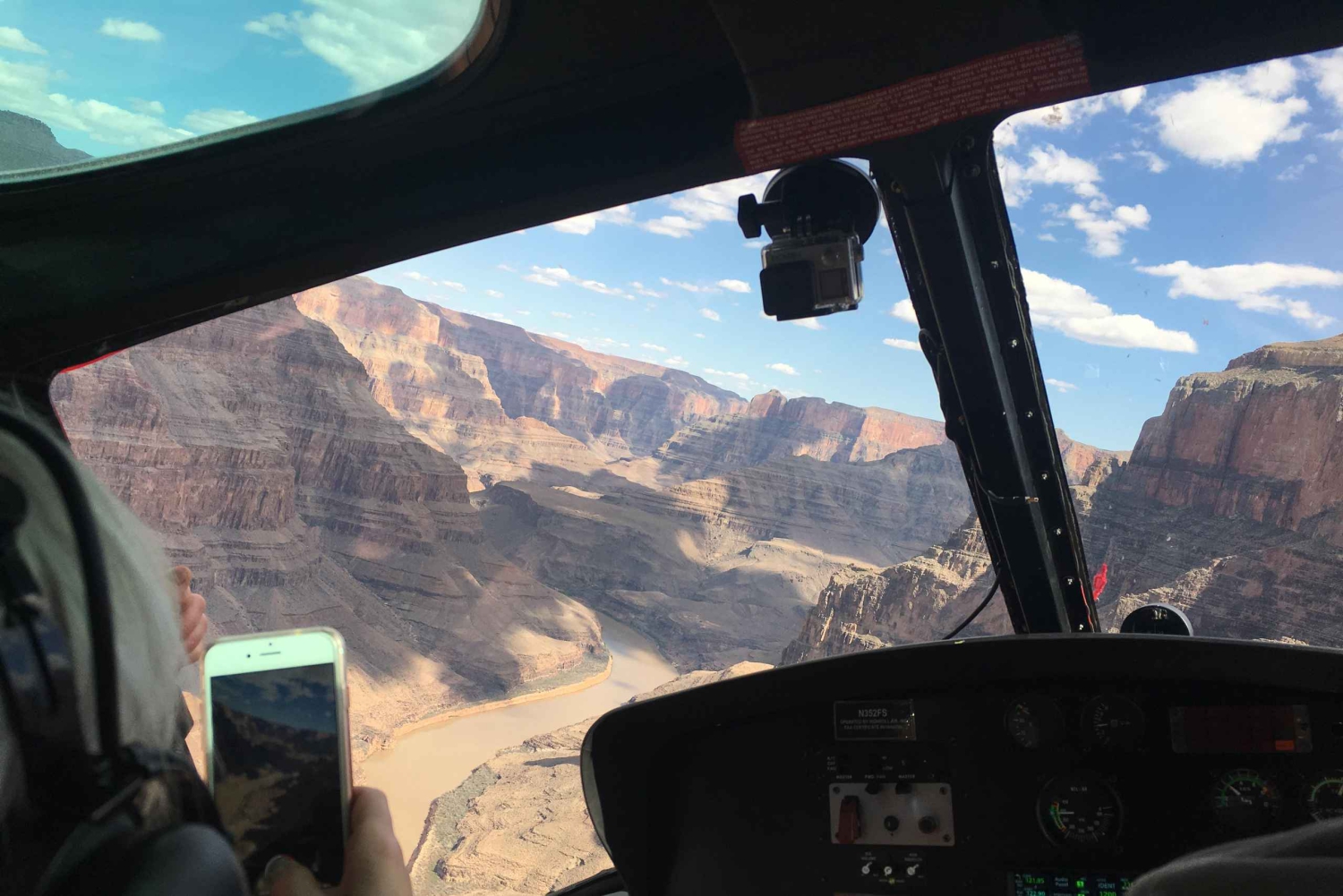- Vlieg 1500 voet onder de rand van de Grand Canyon voor een close-up van de wanden.