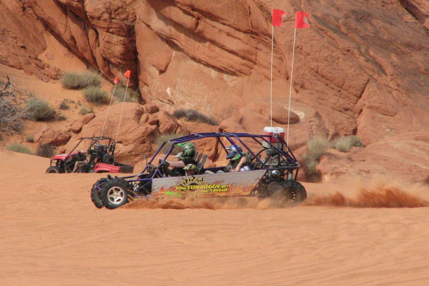 Als je op zoek bent naar een adrenalineknetterende tour in Las Vegas, dan is ons Mini Baja Chase Off Road Adventure echt iets voor jou. Op slechts 15 minuten van The Strip vind je de Vegas Dunes - 15.000 hectare zandduinen, grind, heuvels, valleien en uitgespoelde beekbeddingen. Hier zetten we je in de bestuurdersstoel en dagen we je uit om 30 minuten lang in een off-road buggy achter een van onze deskundige 'Dunies' (gids) aan te rijden door het uitdagende en onvergeeflijke terrein. Dit is geen langzame sightseeingtour. Bij de Mini Baja Chase gaat het erom over zandheuvels te stuiteren, over rotsen te klauteren en de moeilijke paden te bedwingen. Deze tour is misschien niet voor de zwakkeren onder ons, maar je hoeft geen ervaren buggyrijder te zijn om mee te kunnen doen. Onze voertuigen zijn ontworpen om het moeilijke woestijnterrein te beheersen, dus dat hoef jij niet te zijn. De besturing is beperkt tot gas- en rempedalen en een stuurwiel, dus het is net alsof je een automatische auto bestuurt. De buggy's hebben ook een vierpuntsgordel en je krijgt een integraalhelm om je veiligheid te garanderen. Vergeet niet dat dit jouw tour is, dus je kunt zo snel gaan als je wilt. Dus kom op - maak een rit die je niet snel zult vergeten!Includes
