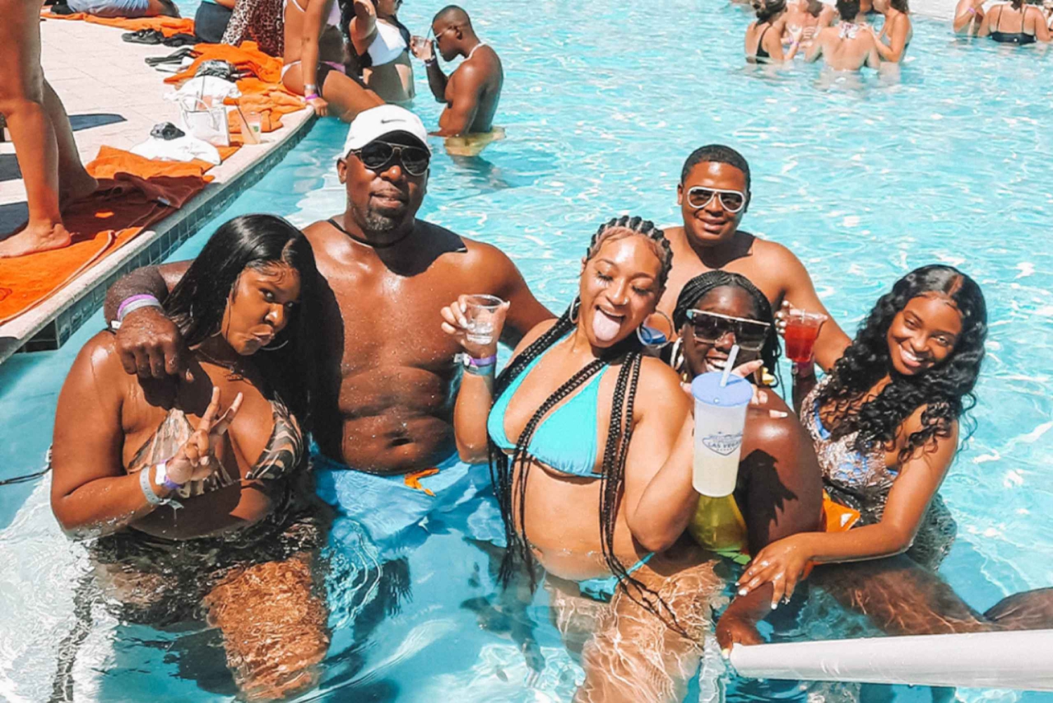 Besøk 2 bassengfester Tur med festbuss på Las Vegas Strip Rask adgang Gratis drinker Erfaren reiselederImportant Information