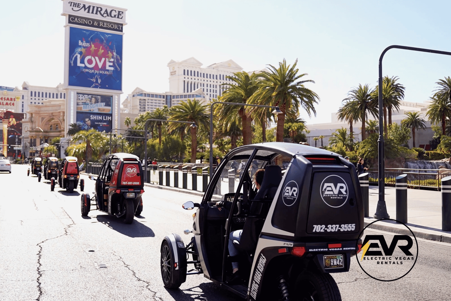 Utforsk hva Las Vegas har å tilby gjennom en annerledes opplevelse ved å kjøre et elektrisk EVR-kjøretøy. Dette morsomme nyttekjøretøyet har komfortable sitteplasser for to, en topphastighet på 75 MPH og en rekkevidde på 100 bymil per lading. Med bare en kort kjennskap til de enkle kontrollene, kan hvem som helst kjøre en av våre EVR-elbiler. På denne 2 timers opplevelsen kan du se steder som * The Las Vegas Strip- Den mest gjenkjennelige gaten i Las Vegas. Det er hjemmet til de mest kjente hotellene og kasinoene * The New Welcome to Las Vegas Sign - Skiltet markerer den klassiske starten på den berømte Las Vegas Strip. * STRAT Hotel Casino & Sky Pod - Synlig over hele byen, den ikoniske STRAT er der Las Vegas Strip begynner og slutter. Hjemmet til det høyeste frittstående utsiktstårnet * Circus Circus - Har en innendørs fornøyelsespark * Resorts World - Hiltons største eiendom * Fashion Show Mall - Med en eklektisk blanding av mer enn 250 forhandlere og over 30 restauranter fordelt på 2 millioner kvadratmeter, er FSLV den største shopping-, spise- og underholdningsdestinasjonen på Las Vegas Strip * Encore på Wynn * The Mirage - Tropisk oase-lignende atmosfære med et fantastisk akvarium * Caesars Palace * New York New York - Berg-og-dal-bane med 180-graders vri og panoramautsikt * The Cosmopolitan - * Mandalay Bay - Fortryllende flukt fra det verdslige og kan skryte av eleganse og en solfylt strand. * Luxor - 30-etasjers pyramide av Luxor Resort er et arkitektonisk vidunder * Det ikoniske originale Velkommen til Las Vegas-skiltet – «Velkommen til Fabulous Las Vegas»-skiltet er et av de mest historiske landemerkene i Las Vegas, bygget i 1959. Veldig populært sted å stoppe for noen fantastiske bilder! * Allegiant Stadium - Hjem til Raiders og UNLV Football * T-Mobile Arena - Hjemmet til NHL-serien og Las Vegas Golden Knights. * High Roller - 550 fot høyt pariserhjul plassert ved LINQ lar deg sveve over Las Vegas for panoramautsikt over byen. * Bellagio-fontener - Over 1000 fontener svaier og danser til musikk og lys på en kunstig innsjø foran Bellagio Resort * De venetianske attraksjonene ligger i arkitektoniske kopier av noen av Venezias største monumenter * MGM-sfæren - Over 360 fot høy og litt over 516 fot bred, noe som gjør den til den største sfæriske strukturen i verden når den er ferdig. Totalkostnaden er over 1,9 milliarder dollar. * Wedding Row - De 12 fargerike bannerne i Wedding Row har lykkelige par som knytter bånd i Las Vegas og ligger i sentrum hvor det er flere kapeller som tilbyr en mengde måter å bli hektet på. * Hjemmet til hit-TV-showet Pawn Stars - The Gold and Silver Pawn Shop, hvor det populære realityprogrammet Pawn Stars er filmet, har blitt et turistmål nå mer populært enn bryllupskapellene Har du det kjempegøy og du vil ha ekstra tid til å utforske mer av Las Vegas? Ikke noe problem ! Bare ring oss og be om å få forlenget turen! Electric Vegas Rentals - 'The Fun Starts Here'Includes