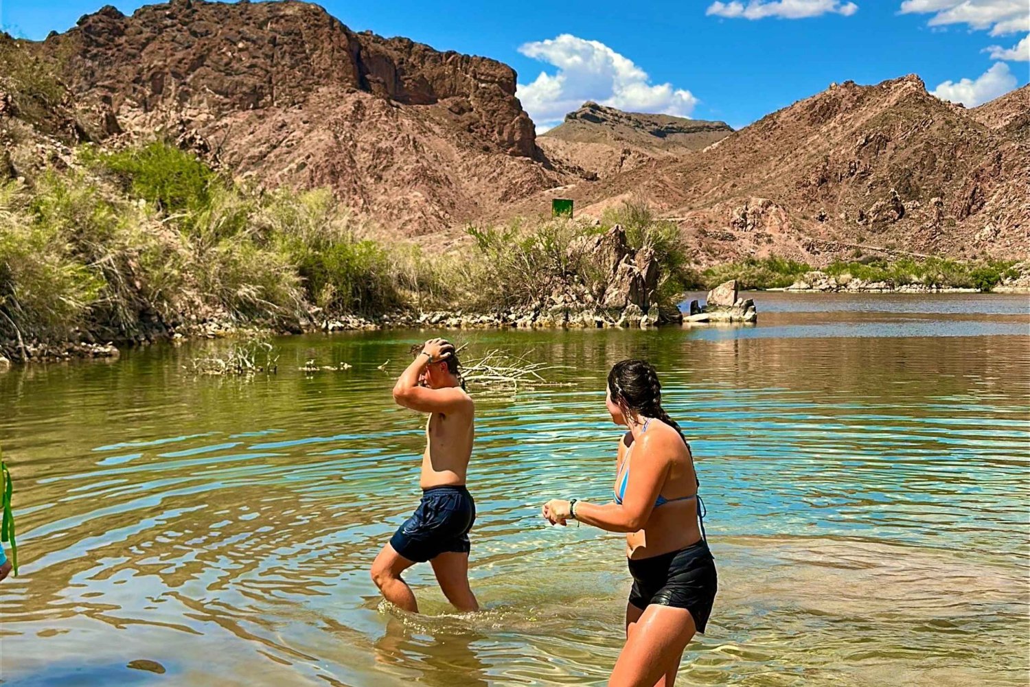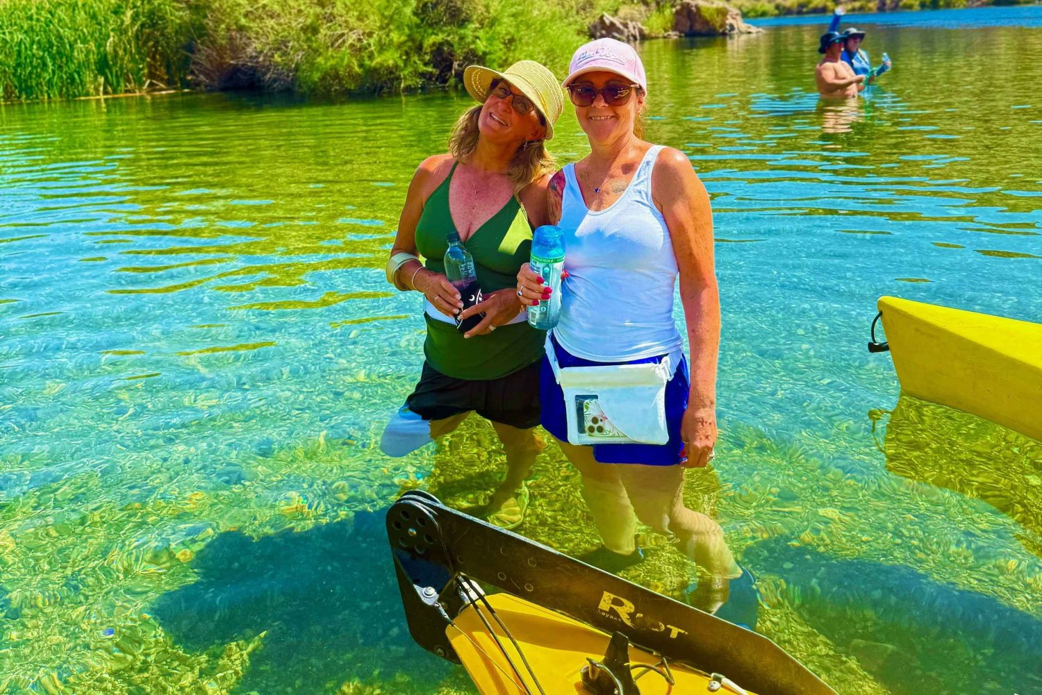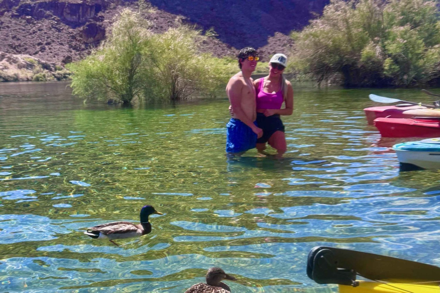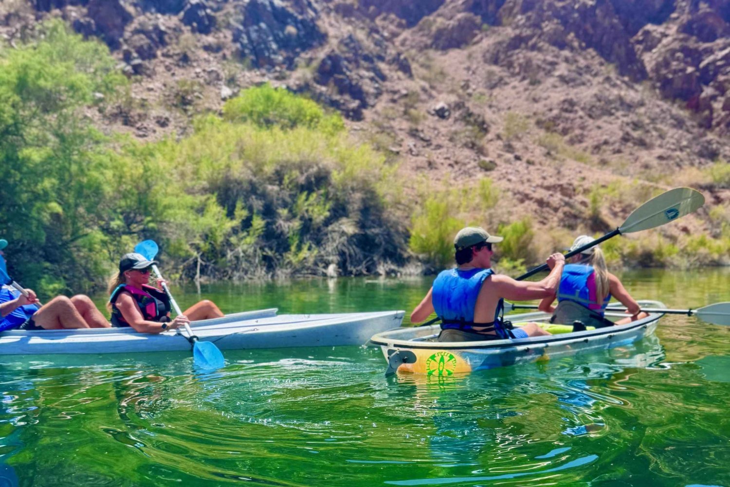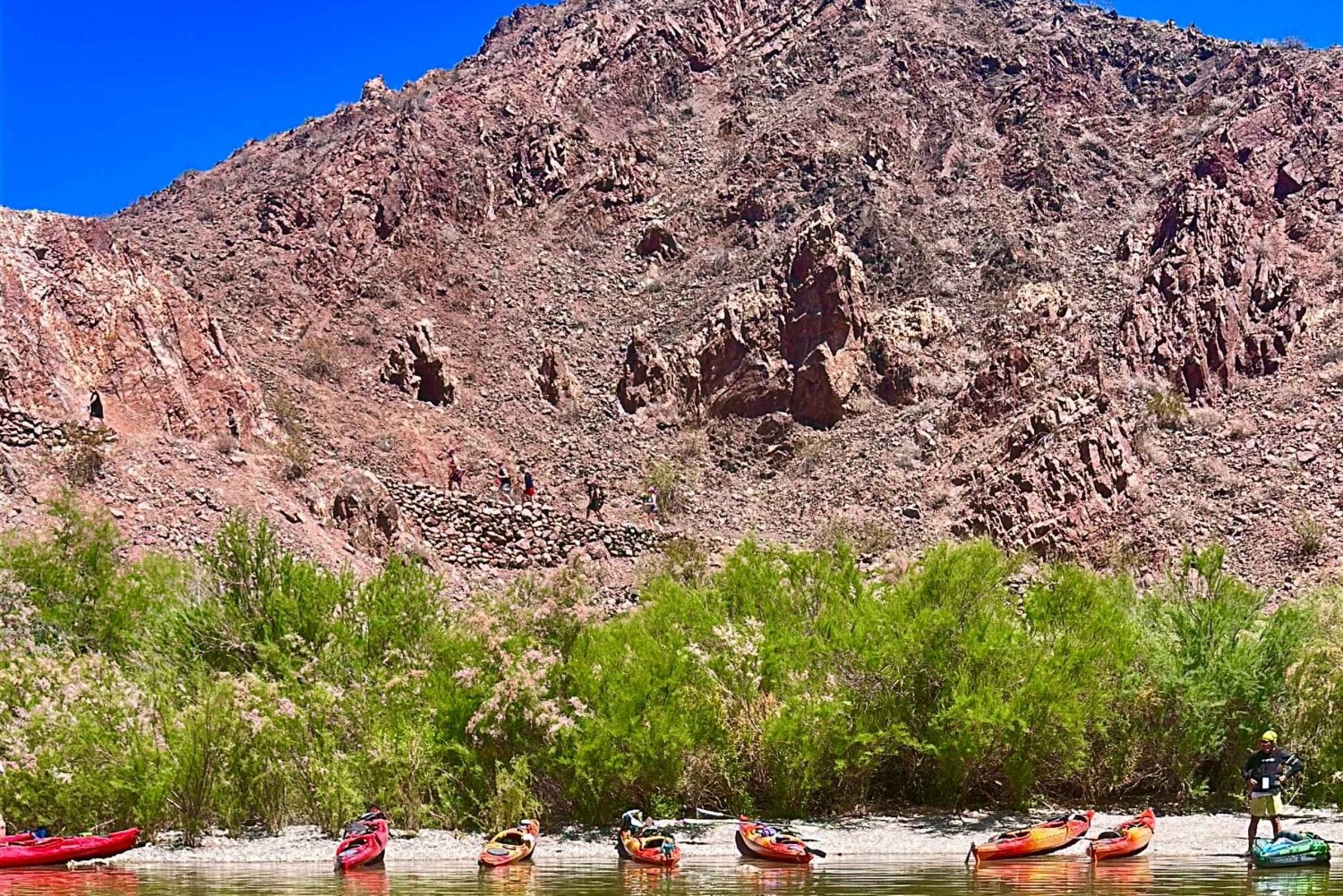Wycieczka kajakowa do jaskini Emerald Cave: Spotkaj się z przewodnikiem i przygotuj kajak, wiosła i kamizelkę ratunkową. Ciesz się wycieczką, która obejmuje krótkie szkolenie, dzięki czemu jest odpowiednia dla początkujących. Wyrusz na turkusowe i szmaragdowe wody Willow Beach i rozpocznij swoją przygodę na rzece Kolorado. JEŚLI POSIADASZ NUMER MIĘDZYNARODOWY, WYŚLIJ E-MAIL NA ADRES Adventurechild@icloud.com LUB WYŚLIJ WIADOMOŚĆ PRYWATNĄ NA NASZ INSTAGRAM, aby skontaktować się z przewodnikiem przed wycieczką. Możesz również wysłać nam wiadomość na WhatsApp. Pomoże nam to zmienić termin wycieczki w przypadku nieoczekiwanej zmiany pogody. Nasz przewodnik pomoże ci pokonać bezwładność rzeki Kolorado. Podziwiaj piękno stromego kanionu z urwistymi ścianami, wypatrując po drodze lokalnej fauny i flory. Dotrzyj do Emerald Cave, niewielkiej szczeliny w ścianie kanionu rzeki Kolorado, gdzie oświetlenie tworzy nieziemskie kolory. Wejdź do jaskini i zrób kilka zdjęć. Kontynuuj spływ rzeką, podziwiając widoki pustynnego terenu. Zatrzymaj się po drodze na krótką, 5-10-minutową wędrówkę, która doprowadzi Cię do kamiennych fundamentów domu kopacza rzeki z lat 20. XX wieku, oferujących wgląd w przeszłość tego miejsca i wspaniałe widoki na okolicę. Zajrzyj do wód, które co tydzień zarybiane są pstrągami tęczowymi, mijając Willow Beach National Fish Hatchery. Spróbuj dostrzec te srebrzyste rybki pływające w szmaragdowych wodach. Wiosłuj do drugiego domu Gaugers House, który wisi na zboczu klifu, i zobacz oryginalne miejsce, w którym powstała tama Hoovera. Zabierz ze sobą przekąski lub piknik, aby cieszyć się nimi podczas postoju na przepięknej plaży w Emerald Cove, zanim wrócisz do przystani Willow Beach Marina. Zwróć sprzęt i zakończ swoją przygodę z niezapomnianymi wspomnieniami z tego wyjątkowego miejsca.Includes