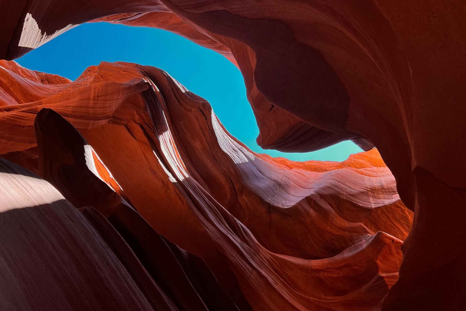 Comece a sua aventura cedo, com o serviço de busca no hotel em Las Vegas às 6h, antes de partir em um confortável ônibus de 15 lugares, projetado para uma viagem relaxante e espaçosa pelo deserto. A tua primeira parada é no Antelope Canyon, onde passarás cerca de 90 minutos a explorar o Upper ou o Lower Canyon. Maravilha-te com as formações de arenito mundialmente famosas, esculpidas pelo vento e pela água em paredes onduladas que brilham com luzes e cores mutáveis. Em seguida, continua até ao icónico Horseshoe Bend, onde o rio Colorado faz uma curva dramática de 270 graus. Passa cerca de uma hora a apreciar a vista e a tirar fotos de tirar o fôlego. Após uma pausa para almoço, viaje até o Lago Powell, um dos maiores lagos artificiais dos EUA. De um mirante panorâmico, admire as vistas panorâmicas das águas turquesa do lago e das dramáticas rochas vermelhas ao redor.Includes