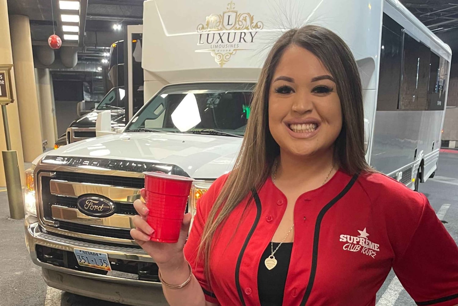 Проведите всю ночь напролет в Лас-Вегасе, отправившись в тур по самым популярным клубам Лас-Вегаса. Почувствуйте себя настоящим VIP-персоной, преодолевая длинные очереди в клубах. Принесите свои собственные напитки и приготовьте их на ходу, путешествуя по городу на автобусе для вечеринок. Начните свой вечер в местном лаундже и путешествуйте между латиноамериканскими клубами на борту автобуса для вечеринок, оснащенного различными миксерами для ваших напитков. Стильно катайтесь по Вегасу с напитком в руке. Танцуйте всю ночь напролет в таких клубах, как ночной клуб Drai's, ночной клуб Tao, ночной клуб Marquee, Foundation Room, On the Record, ночной клуб Jewel и ночной клуб Embassy. В конце вашего опыта вас высадят на бульваре Лас-Вегас.Includes