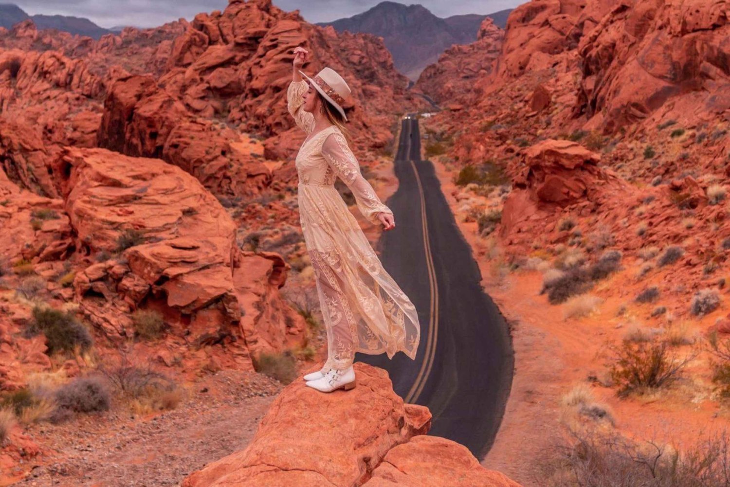 Отправьтесь из Лас-Вегаса на частном автомобиле, чтобы оценить самый старый и самый большой государственный парк в Неваде: Долину Огня. По прибытии вы будете поражены уникальными цветами древних скальных образований. По пути вы сделаете несколько остановок для фотосъемки. Экскурсия начнется в информационно-туристическом центре парка, где вы получите краткую информацию о скальных образованиях, петроглифах и истории коренных американцев. Затем отправляйтесь исследовать самые знаковые пейзажи парка, включая Atlatl Rock, Rainbow Vista, Mouse's Tank и многое другое. Не торопитесь, чтобы сделать лучшие снимки в долине, запечатлевая драматические пейзажи и контраст между красными скалами и окружающей пустыней.Includes
