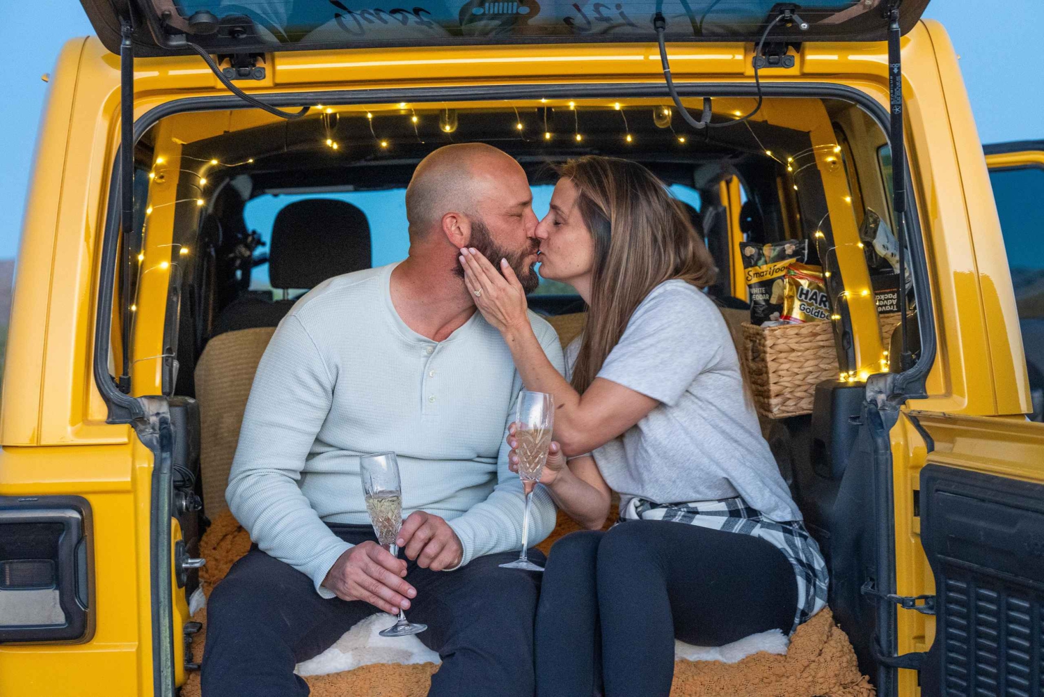 Transport med hyrd 4x4 till platsen Upplyst skylt med texten 'Gift dig med mig Filtar och kuddar Videokamera med stativ Professionell fotograf (tillval) Färska blommor (tillval) Ved för lägereld (tillval) Gourmetsnacks och drycker (tillval)Important Information